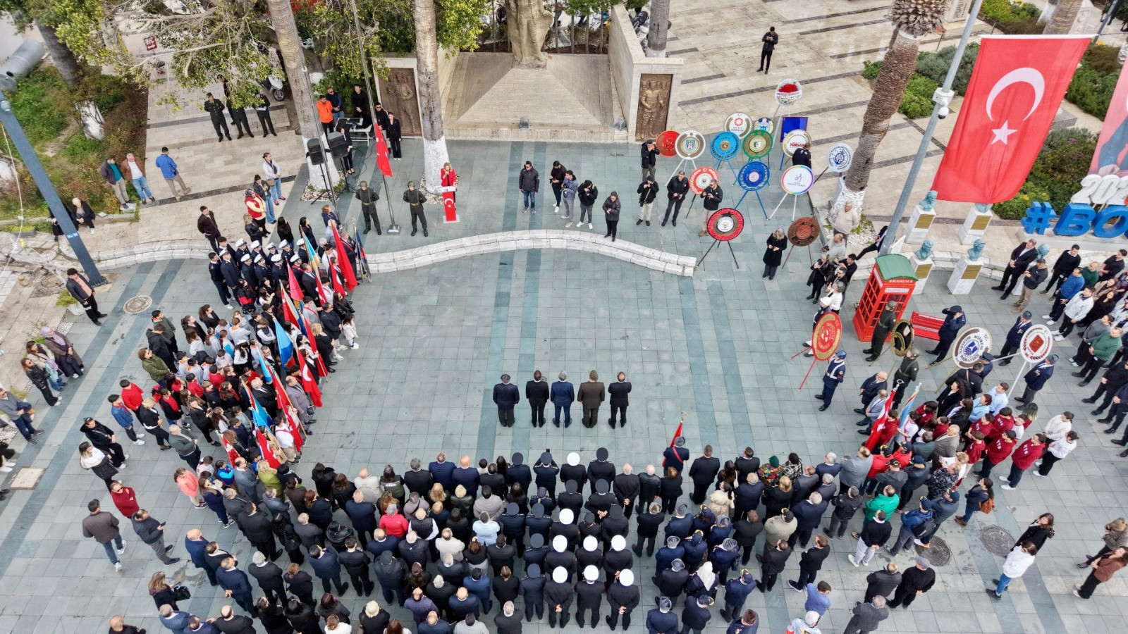 18 Mart Çanakkale Zaferi ve Şehitleri Anma Günü’nün 111. yıl dönümü kapsamında Bodrum Kaymakamlığı tarafından Belediye Meydanı Atatürk Heykeli önünde resmî tören düzenlendi. Program Bodrum Belediyesi Herodot Kültür Merkezi’nde etkinliklerle devam etti.