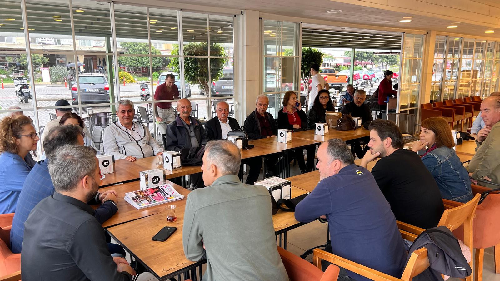 Fethiye’de bulunan Saliha Sultan Pastanesi Akarca Şubesi’nde MGC Fethiye Temsilcisi Gülyüz Yurdagül ile Dalaman-Ortaca-Köyceğiz Temsilcisi Güngör Çoban ev sahipliğindeki program MGC Başkanı Süleyman Akbulut, yönetim kurulu üyeleri ve bölgede görev yapan basın mensuplarının katılımıyla gerçekleştirildi. Sohbet havasında geçen programda basın çalışanları talep ve sorunlarını Başkan Akbulut’a ilettiler.