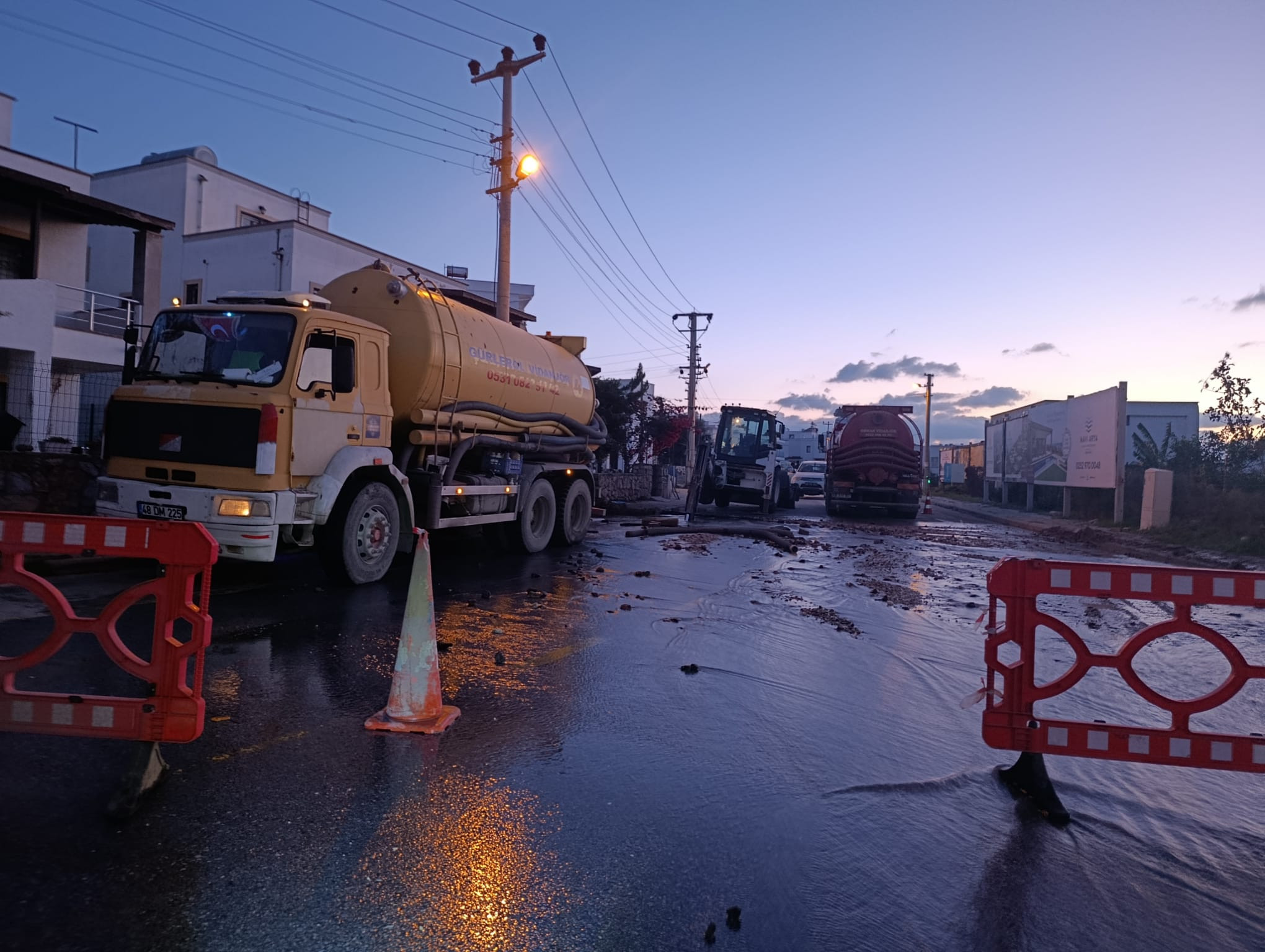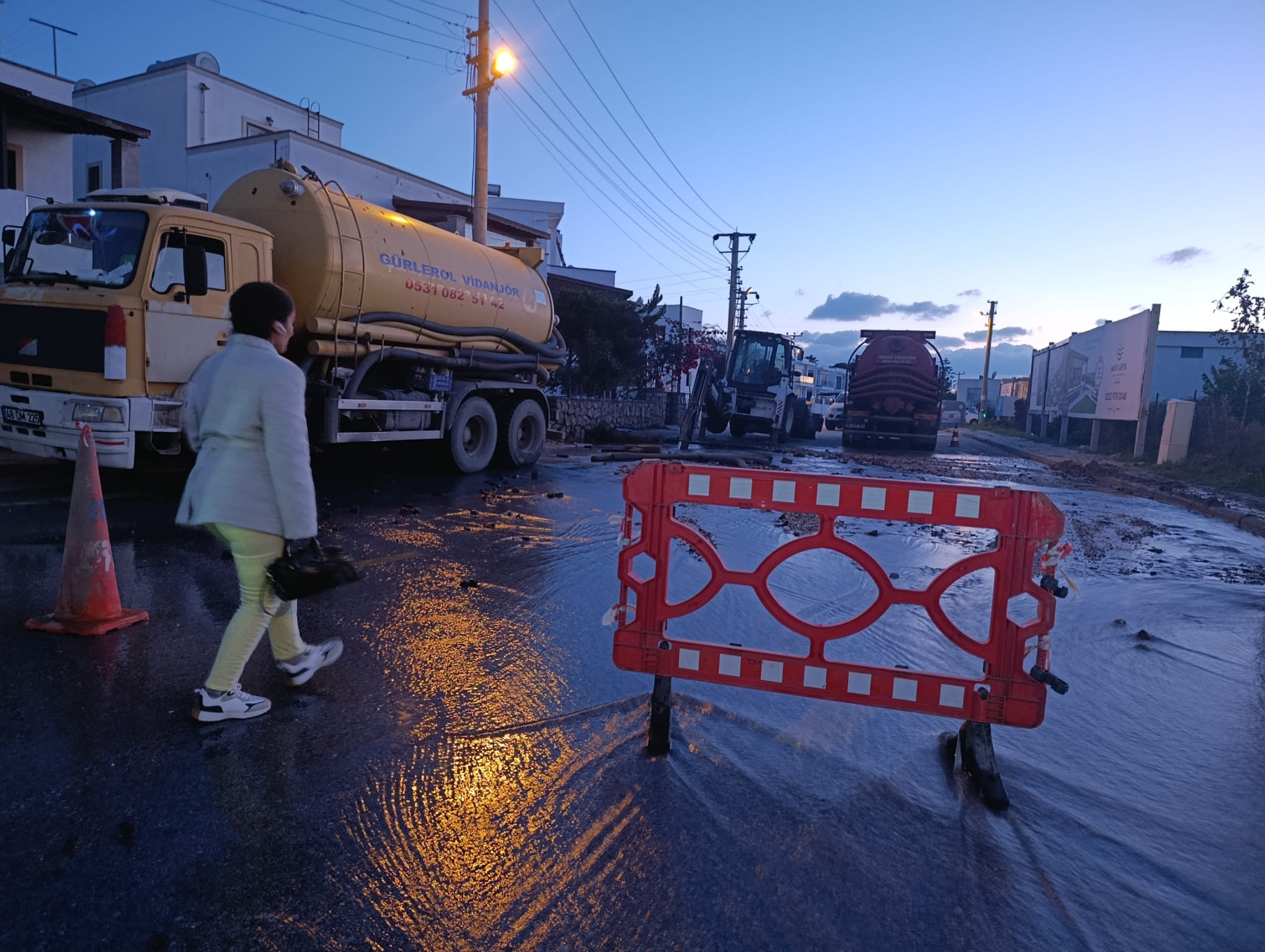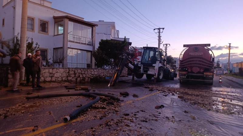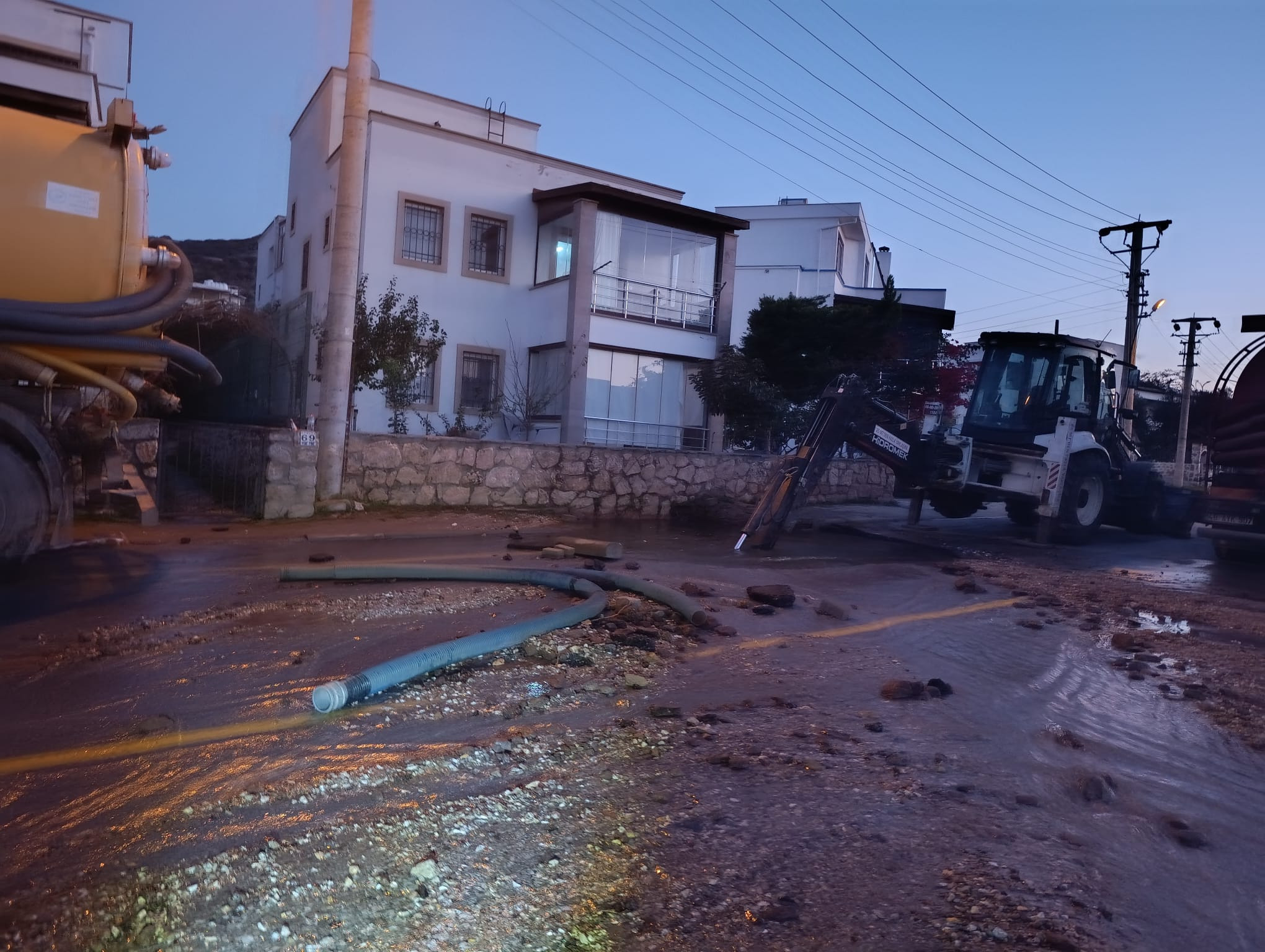 MUSKİ Turgutreis'te Kanalizasyona Müdahale Ederken İçme Suyu Hattını Patlattı
