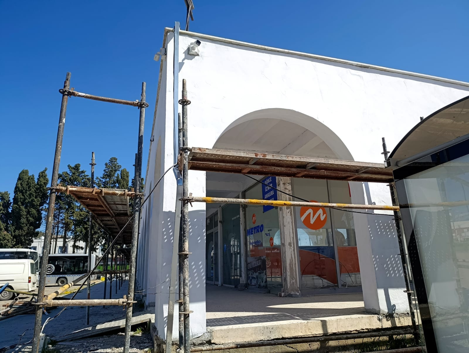 Bölgeden gelen son görüntülerde, binanın karakteristik kemerli yapısına iskelelerin kurulduğu ve dış cephe yenileme işlemlerine başlandığı görülüyor. Çalışmaların temel amacının, yapıyı modern bir görünüme kavuştururken çevredeki görüntü kirliliğini ortadan kaldırmak olduğu belirtiliyor.