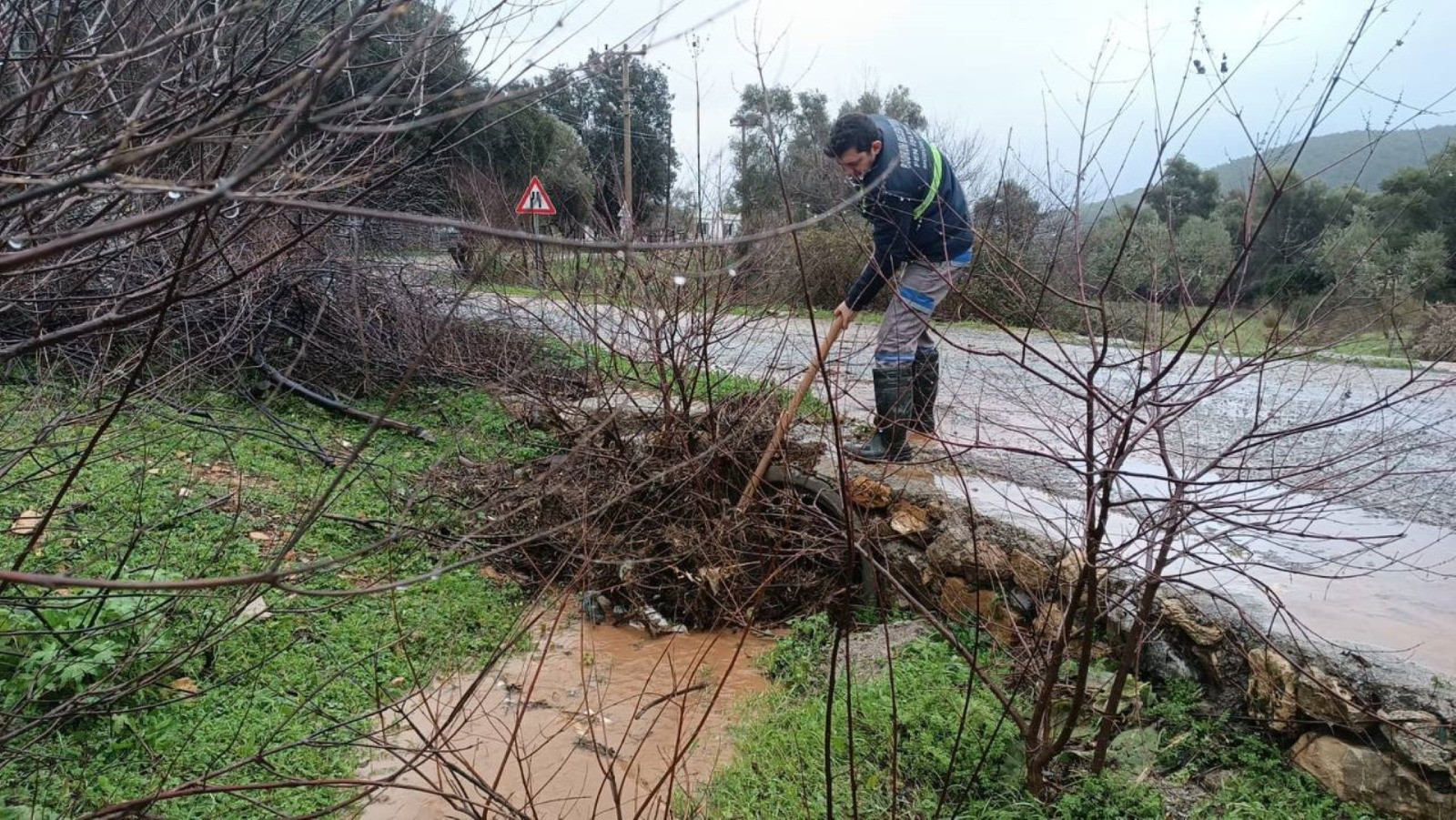 Meteorolojik uyarıların devam ettiği Bodrum’da belediye ekiplerinin fırtına ve yağmur mesaisi aralıksız sürüyor.