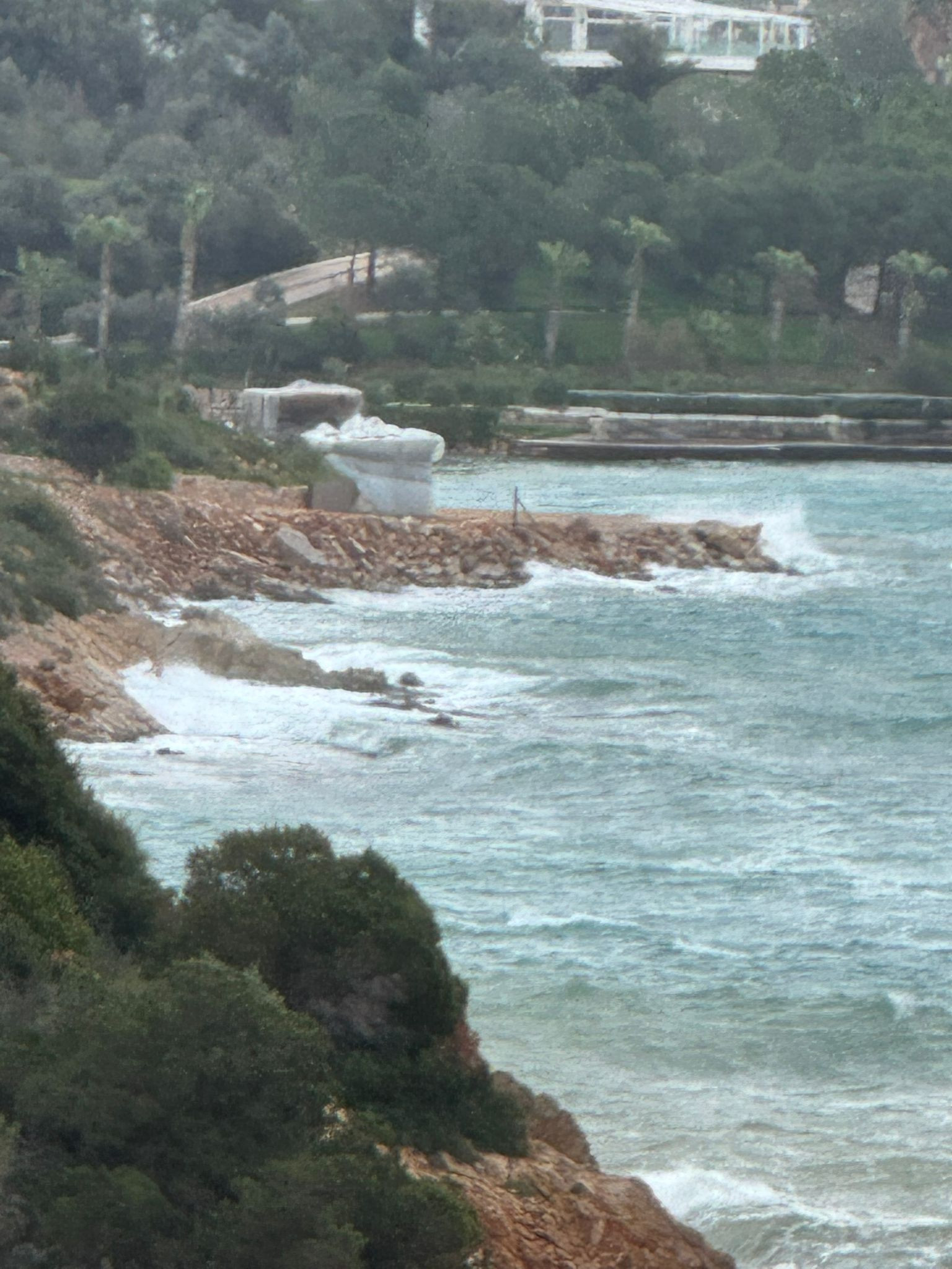 Denetim ekipleri olay yerine ulaştığında, iş makinelerinin çalışmayı yeni durdurduğu saptandı. Yapılan incelemelerde kıyı şeridindeki burun üzerine kontrolsüzce taş ve toprak döküldüğü, denizin ise dökülen malzeme nedeniyle bulanık ve çamurlu bir hal aldığı rapor edildi. Çalışmanın ekiplerin gelişiyle eş zamanlı olarak alelacele sonlandırıldığı değerlendiriliyor.