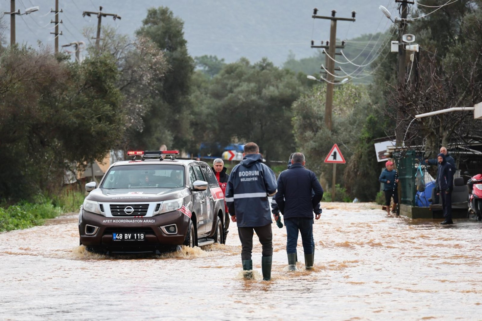 Bodrum Belediyesi, Muğla Büyükşehir Belediyesi, MUSKİ ve İtfaiye ekipleri tarafından toplam 60 araç ve 106 personel ile sahada müdahale çalışmaları yürütüldü. Ayrıca, Bodrum Kaymakamlığı, AFAD ve AKOM ile koordinasyon sağlanırken; gerekli tahliye, su tahliye, temizlik ve güvenlik önlemleri de alındı.