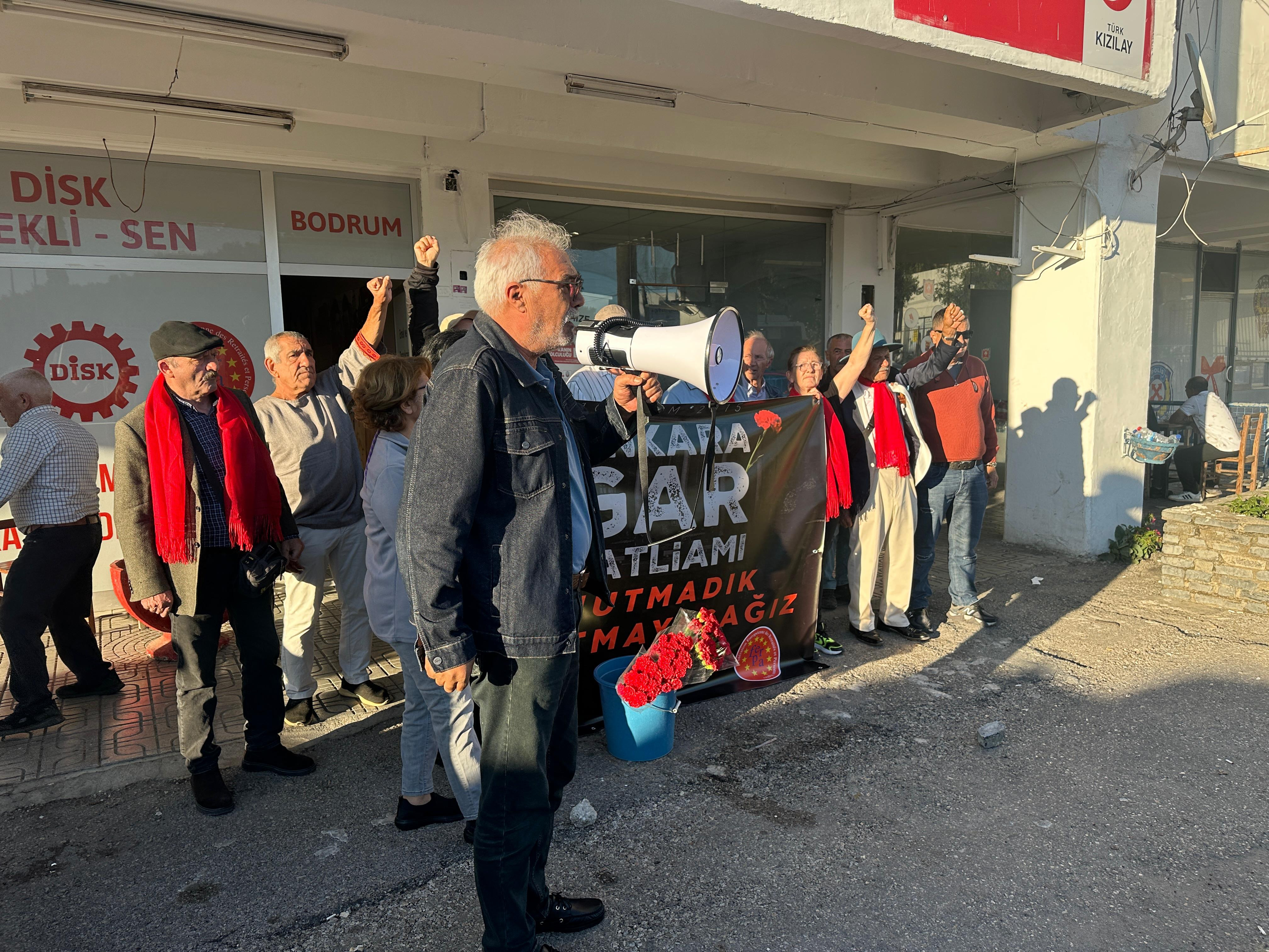 DİSK-Devrimci Emekli Sen adına konuşan Bahtışen Karahan da; “Bugün, 2025 Türkiye’sinde, demokratik haklara yönelik baskıların arttığı, düşünce ve ifade özgürlüğünün daraltıldığı, toplumsal kutuplaşmanın bilinçli olarak körüklendiği bir dönemde yaşıyoruz. 10 Ekim Katliamı’nın karanlık noktaları aydınlatılmadığı sürece bu ülke gerçek anlamda geçmişiyle yüzleşemeyecek ve kalıcı bir barışa ulaşamayacaktır. Cezasızlık politikaları sadece geçmişin suçlarını örtmekle kalmıyor; geleceğe de yeni karanlıkların kapısını aralıyor. Cezasızlık teröre yol veriyor. Biz, DİSK Emekli-Sen Bodrum Şubesi olarak, 10 Ekim Katliamı’nda yaşamını yitirenleri sevgiyle, özlemle ve saygıyla anıyoruz. Onların yarım kalan sözlerini, barışa olan inançlarını ve dayanışma ruhlarını yaşatmak için buradayız. Bu katliamın üzerindeki sis perdesi kalkmadan, gerçek sorumlular hesap vermeden bu ülke için, barış ve demokrasi mücadelesi eksik kalacaktır” görüşüne yer verdi.