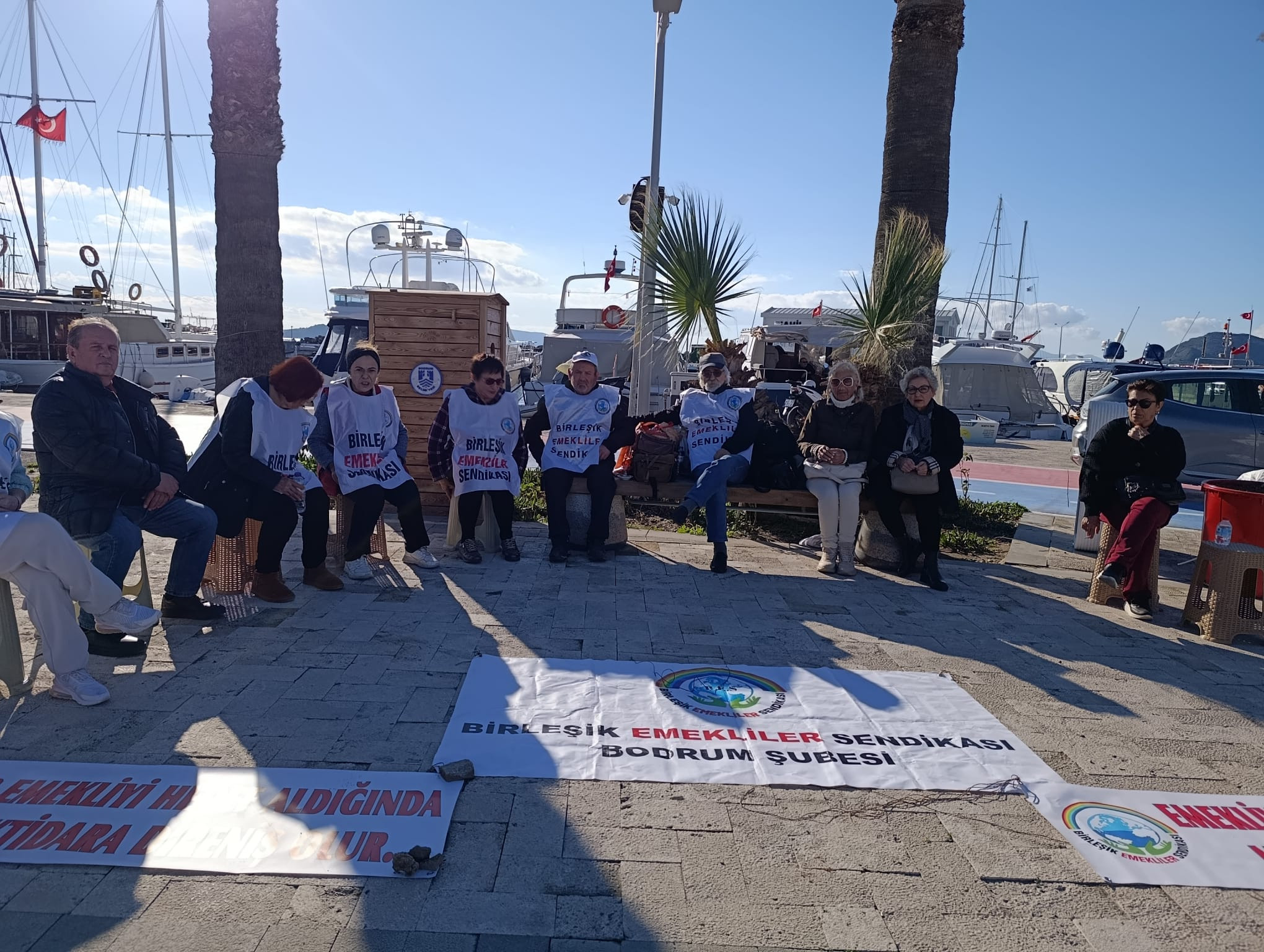Bodrum Turgutreis, Türkiye genelindeki emeklilerin ekonomik şartlarına ve özlük haklarına dikkat çekmek amacıyla başlatılan önemli bir protestoya ev sahipliği yapıyor.