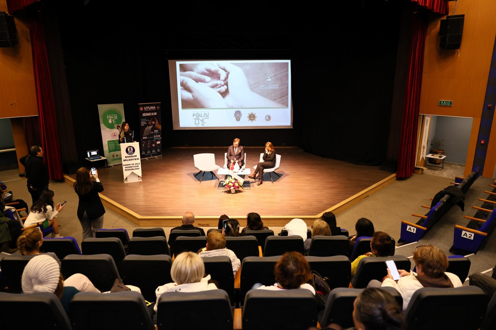 Bodrum Belediyesi Kadın ve Aile Hizmetleri Müdürlüğü tarafından organize edilen program, Bodrum İlçe Emniyet Müdürlüğü Narkotik Suçlarla Mücadele Büro Amirliği ve Muğla Barosu Bodrum İlçe Temsilciliği iş birliği ile Nurol Kültür Merkezi’nde gerçekleştirildi. Programa Bodrum Belediye Başkanı Tamer Mandalinci’yi temsilen Başkan Yardımcısı Tanju Aksu, Kadın ve Aile Hizmetleri Müdürü Gözde Çakıroğlu ve vatandaşlar katıldı.
