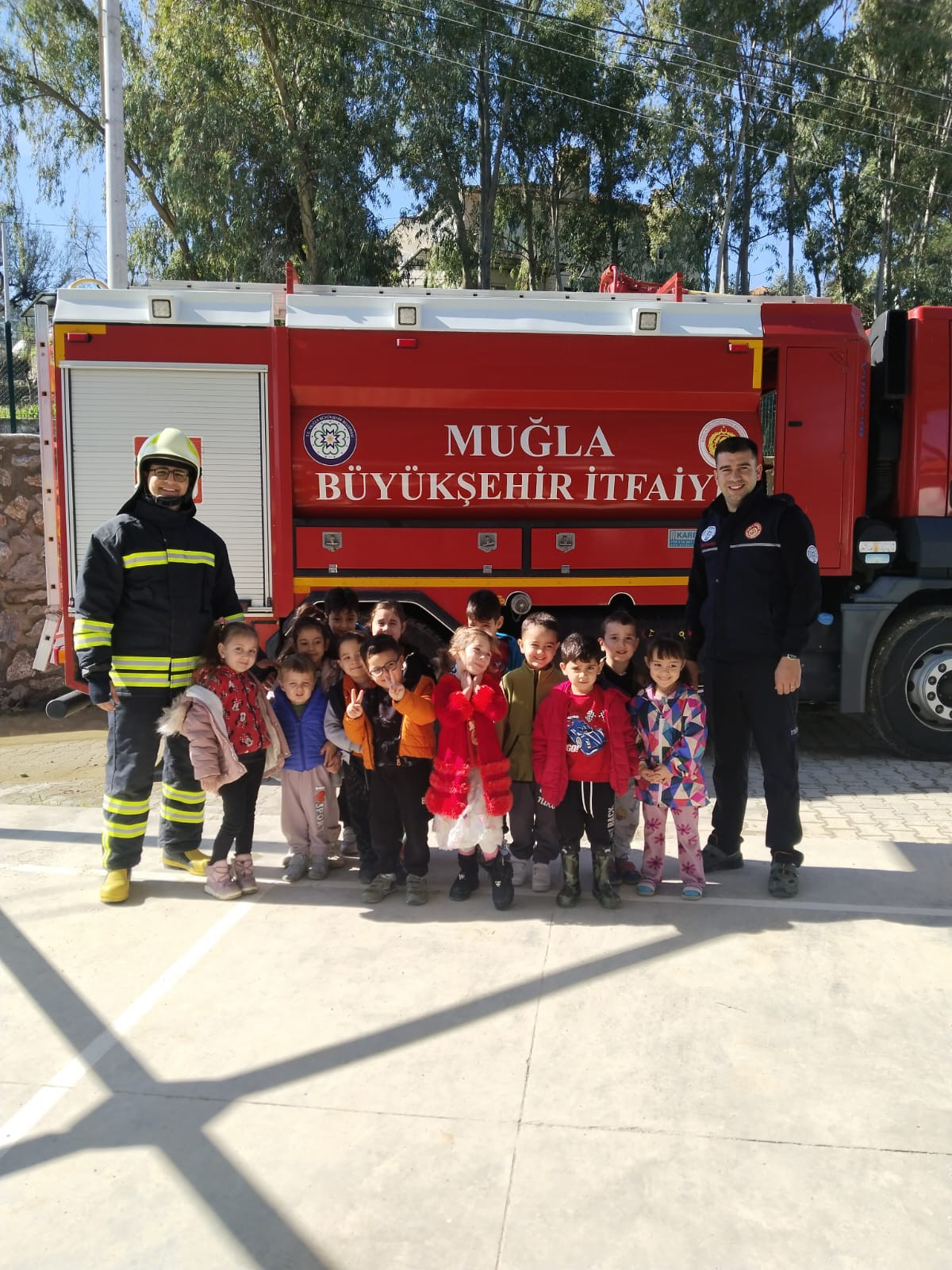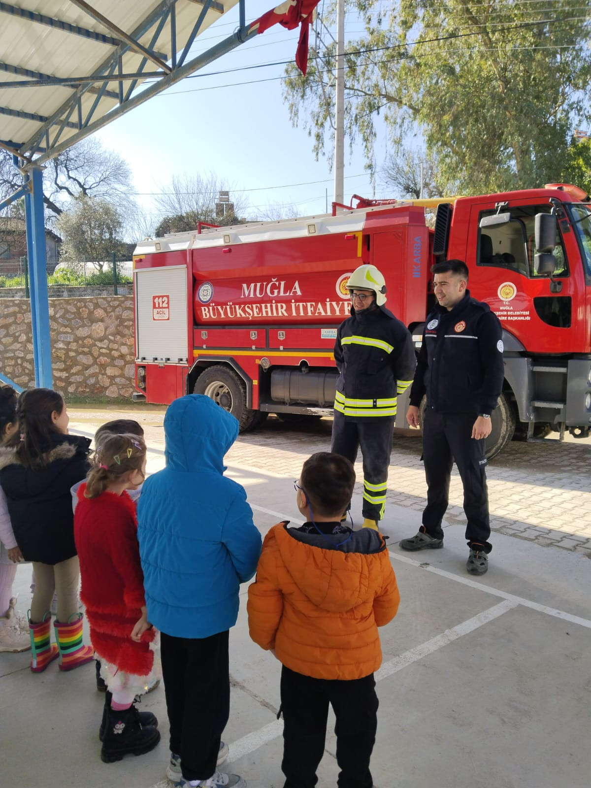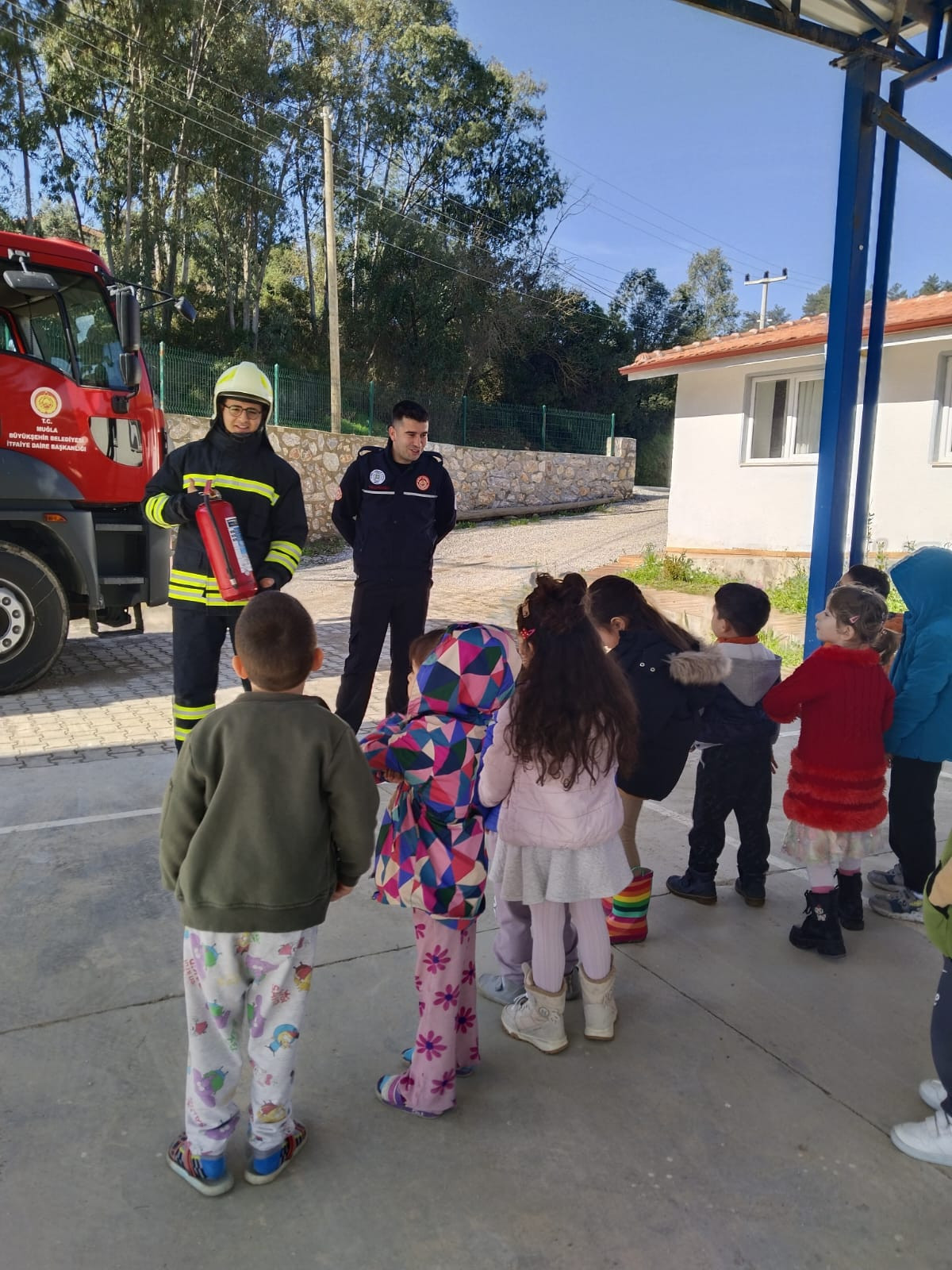 Muğla Büyükşehir Belediyesi İtfaiye ekipleri, Ula Kızılyaka İlköğretim Okulu ana sınıfı öğrencilerine yangın ve acil durumlara yönelik bilgilendirme eğitimi verdi