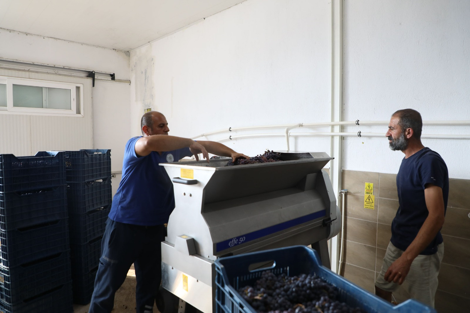 Üzüm üreticisi Saffet Işık, “Kooperatifimizin bahçesinden ve kendi tarlamızdan topladığımız üzümleri buraya getirdik. Üzümlerimiz burada değerlendirilecek. Bizlere bu imkânı sunan Büyükşehir Belediye Başkanımız Ahmet Aras’a teşekkür ediyorum.” dedi.