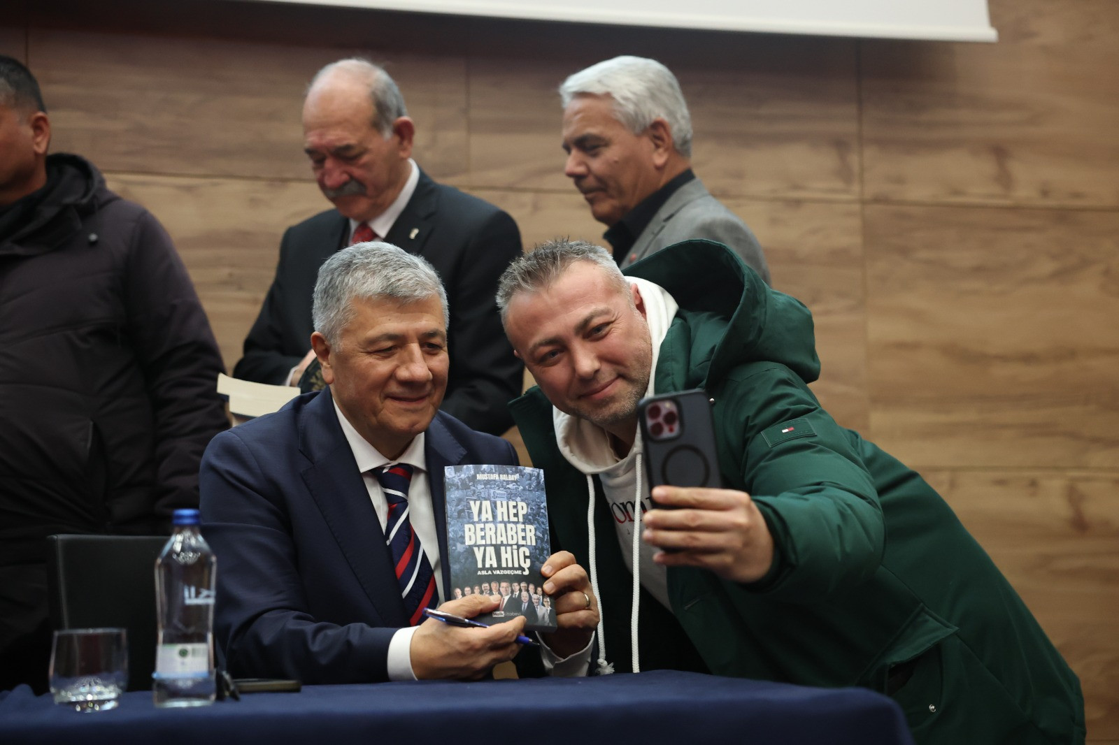 Söyleşi ve imza günü etkinliği Muğla Büyükşehir Belediye Başkanı Ahmet Aras ve Mustafa Balbay’ın kitapları imzalamasıyla sona erdi.