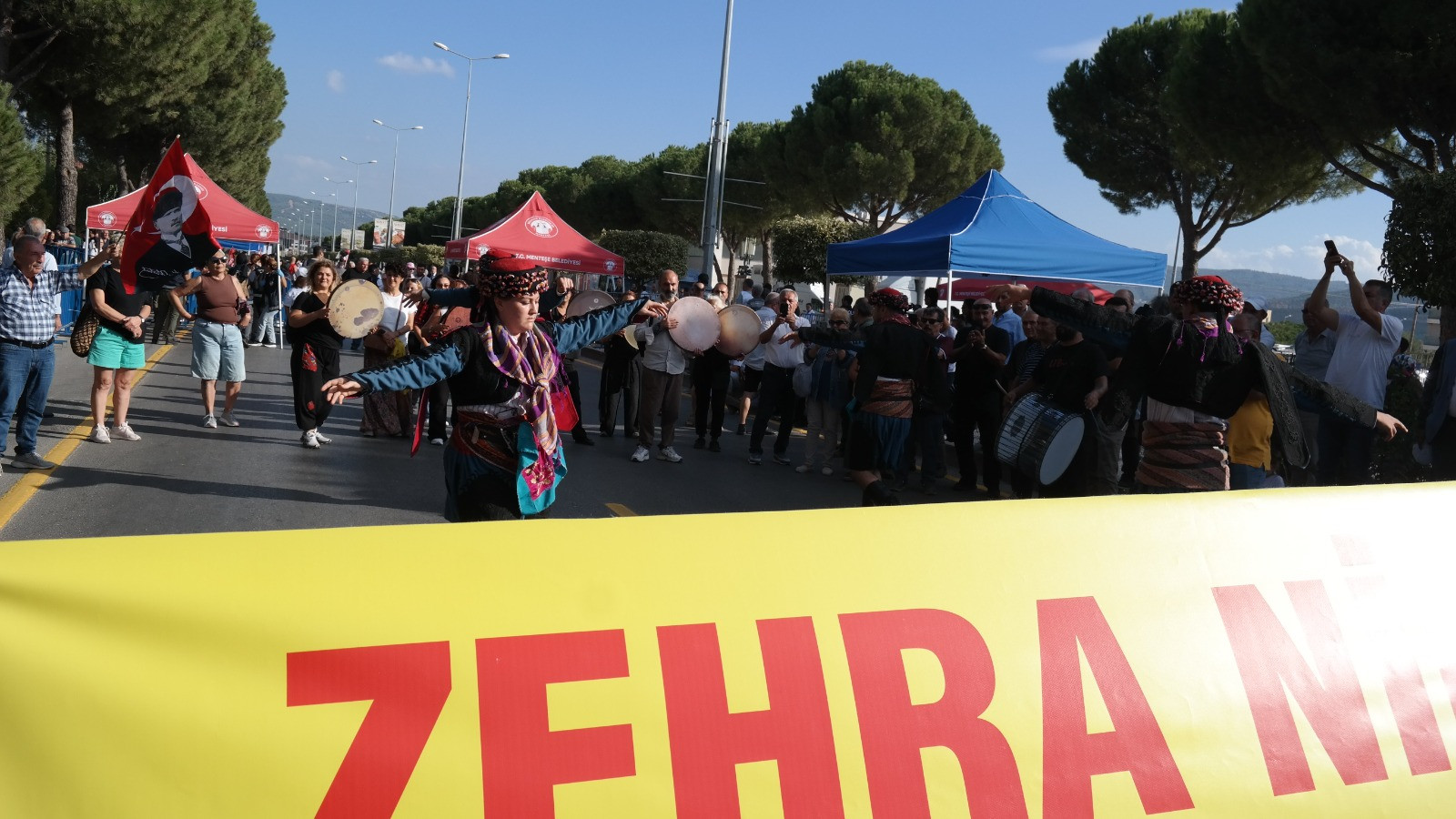 Mitingde KESK Eş Başkanı Ayfer Koçak, TMMOB Yönetim Kurulu üyesi Arif Balkanay, Türk tabibler Birliği Merkez Konseyi Başkanı Alpay Azap, Kızıl Parti Eş Genel Başkanı Candan Polat Köksal, Sol Parti Sözcüsü İlknur Başer, Yeşil Sol Parti Sözcüsü Didem Göçer, Emep Genel Başkanı Seyit Aslan, Yeni Yol (Saadet Partisi+Gelecek Partisi) TBMM Grup Sözcüsü Selçuk Özdağ, TİP Milletvekili-Parti Sözcüsü Serra Kadıgil, DEM Parti Eş Genel Başkanı Tülay Hatimoğlulları da kürsüden kalabalığa seslendiler. Mitingde iki hafta önce kanserden yaşamını yitiren İkizköy’ün zeytin direnişçilerinden Zehra (Yıldırım) Nine de unutulmadı. GÜNZEYDER (Güney Ege Zeytinciler Derneği) organizasyonu ile “Zehra Nine Şükran Kervanı” oluşturuldu. Kortej, “Zehra Nine’yi Vermiyoruz” pankartıyla davul-zurna eşliğinde alana girerken, zeybeklerin oyununa diğer katılımcılarda eşlik etti. Erbani müzik topluluğu performans gösterisi gerçekleştirdi. Katırlarla zeytin hasadı canlandırıldı. “Zehra Nine Kervanı” mitingin en ilgi çeken korteji oldu. GÜNZEYDER Başkanı Tahir Kahraman; “Bu kortej sadece derneğimizin çabası ile oluşmadı. Köyceğiz’den gelen Erbani Müzik Topluluğu, Bodrumlu dostlarımız, Aydın’ın efe yürekli ve hiçbir koşulda topuklamayan kadınlarının, gençlerin, çiftçilerimizin de emeği ile gerçekleşti bu kervan. Ve inanıyorum ki; bu kervanın yürüyüşü burada nihayetlenmeyecek. Bu dost kervanı, motorları maviliklere sürerek kutsal bir yolculuğun izini sürecektir. Katkı sunanlara içten teşekkürler görüşlerini dile getirdi.