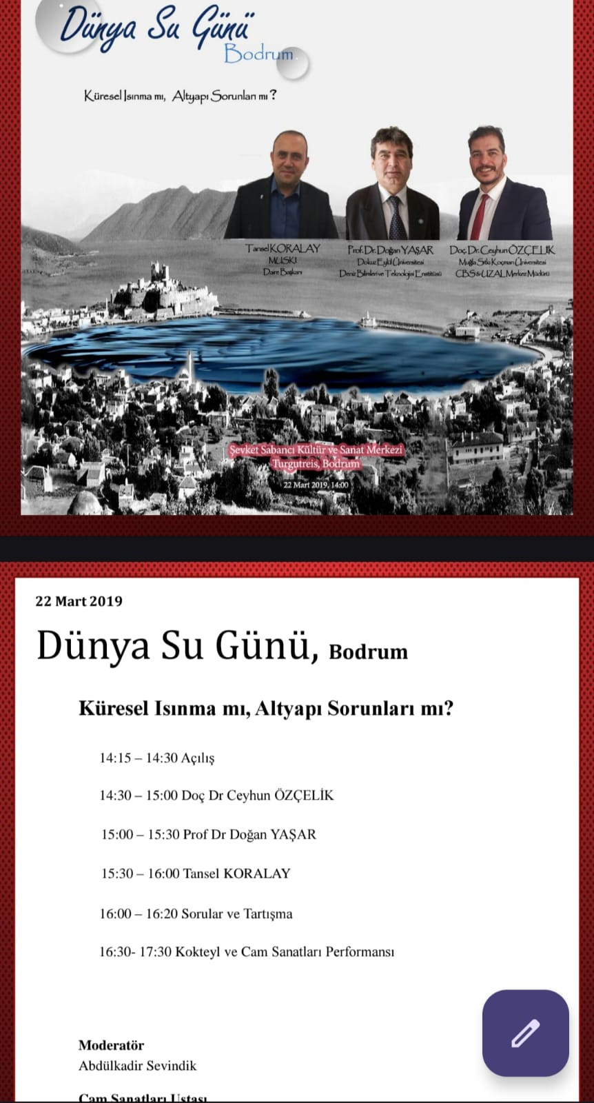 Suyun önemi hususunda farkındalık oluşturabilme gayesiyle, 2019 yılında 22 Mart Dünya Su Günü münasebetiyle bir panel düzenledik.