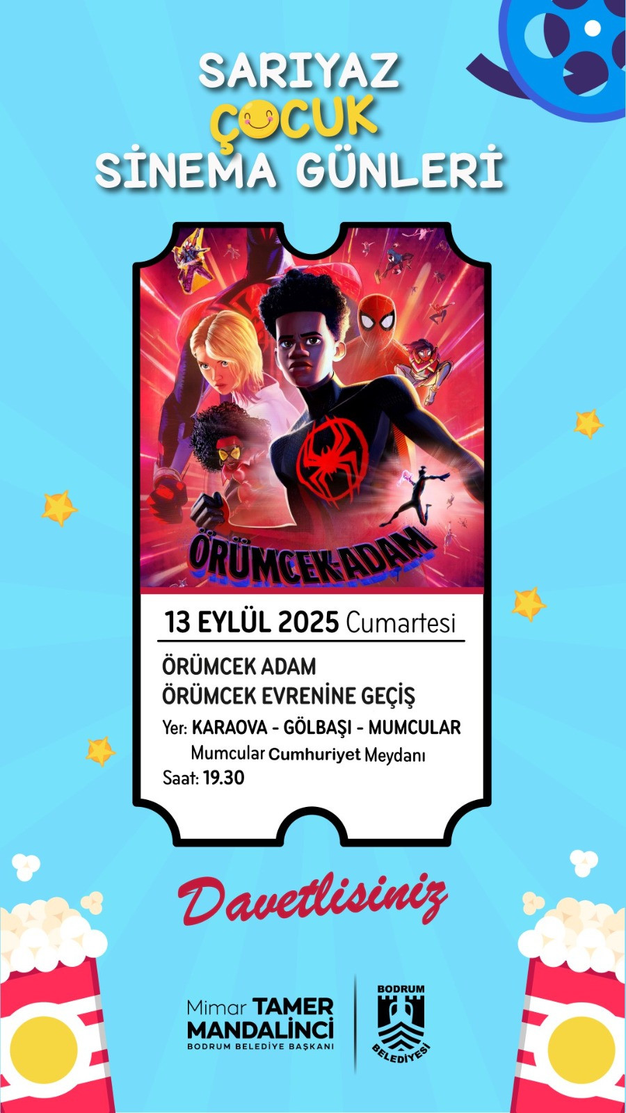 Çocuklara yönelik düzenlenen açık hava sinema etkinlikleri, 13 Eylül Cumartesi günü Mumcular Cumhuriyet Meydanı’nda başlayacak. 26 Ekim Pazar gününe kadar sürecek film gösterimleri, her hafta cuma, cumartesi ve pazar günleri Bodrum’un farklı mahallelerinde gerçekleşecek.