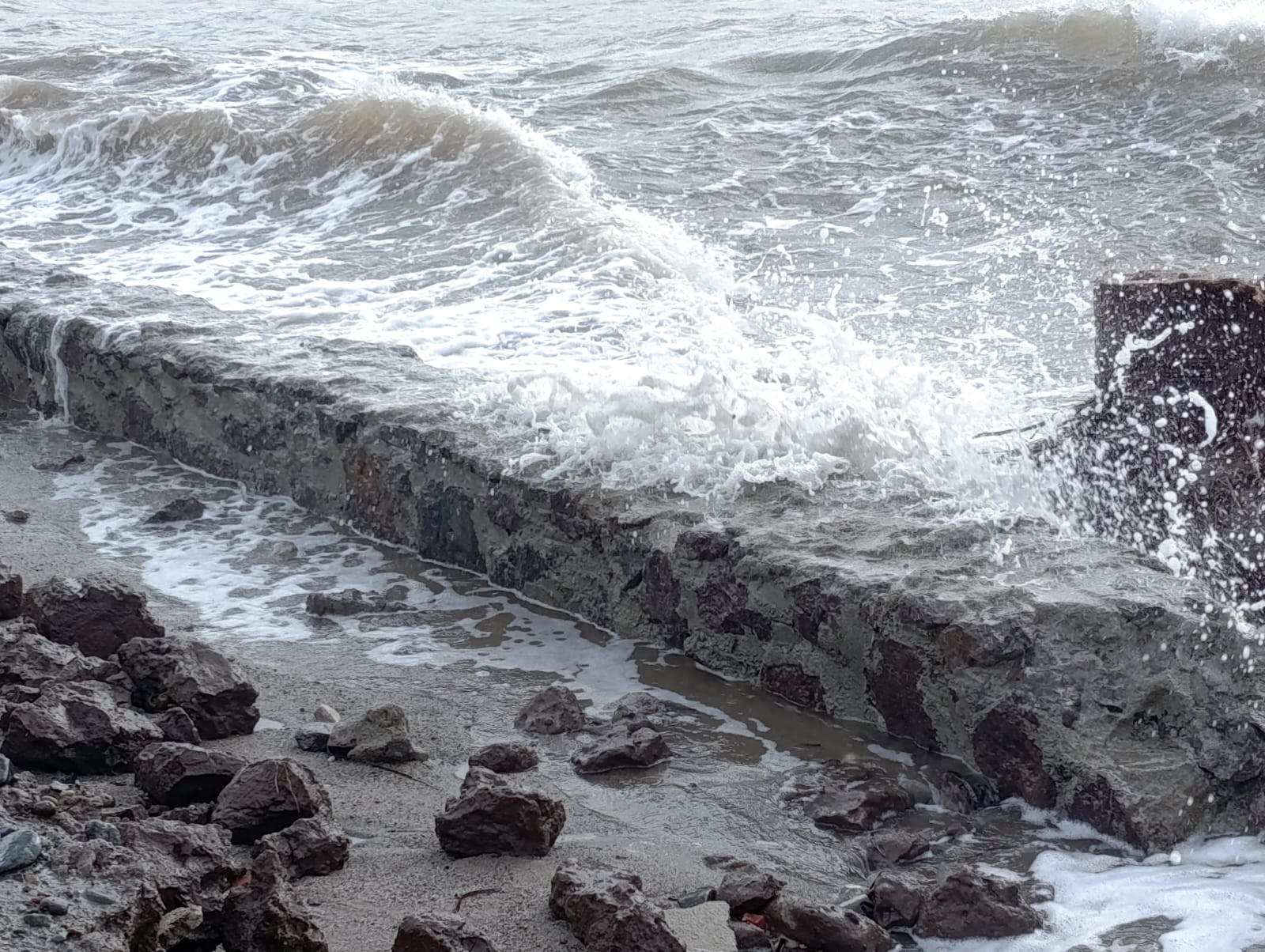 Şiddetli dalgaların kumları süpürmesiyle, eski otele ait havuz ve duvar temelleri gün yüzüne çıktı.